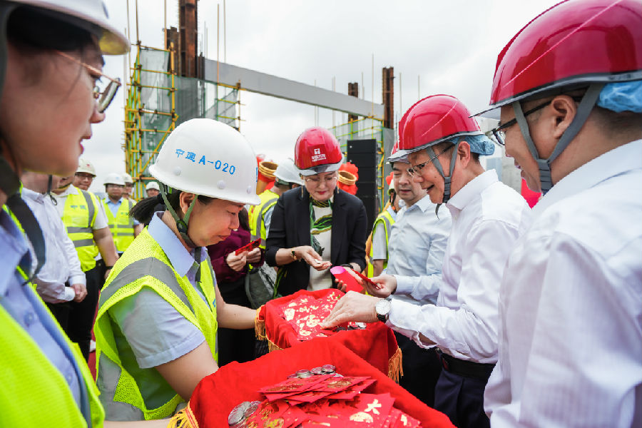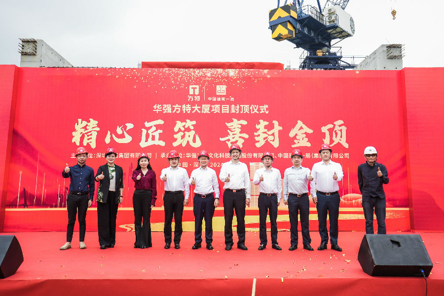 EBET易博集团董事,EBET易博方特集团董事长、总裁刘道强,EBET易博集团副总裁陆培康,EBET易博方特集团执行总裁陈辉军、尚琳琳、顿忠杰等领导也出席了封顶仪式。