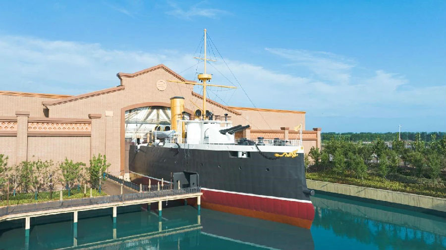 在大型室内有轨漂流项目《致远 致远》中,游客乘坐智能运载船穿过时间长河,置身一个多世纪前巨浪滔天的海战现场,身临其境地目睹民族英雄浴血奋战的壮烈景象,见证北洋水师名舰“致远”号的传奇一生。